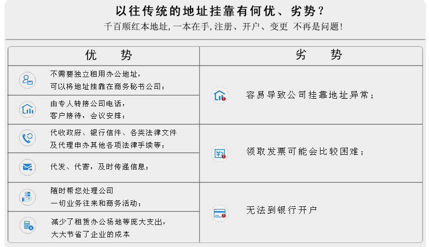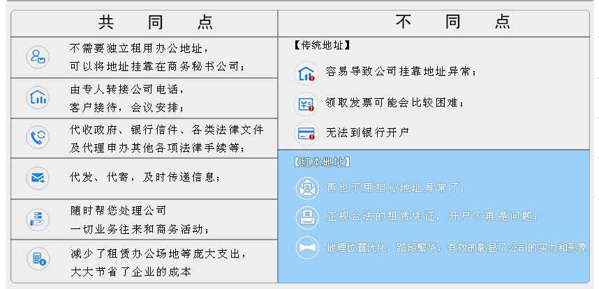 A:1.創業者不需要獨立租用辦公地址,可以將地址掛靠在商務秘書公司,降低了成本;